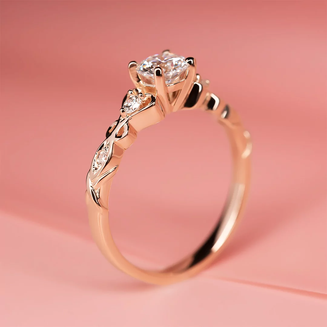 Pierścionek z diamentami o łącznej masie 0,60 ct, wykonany z 14-karatowego różowego złota. Kamień centralny to brylant o masie 0,50 ct, czystości SI1, barwie H z certyfikatem Amerykańskiego Instytutu Gemmologicznego GIA.