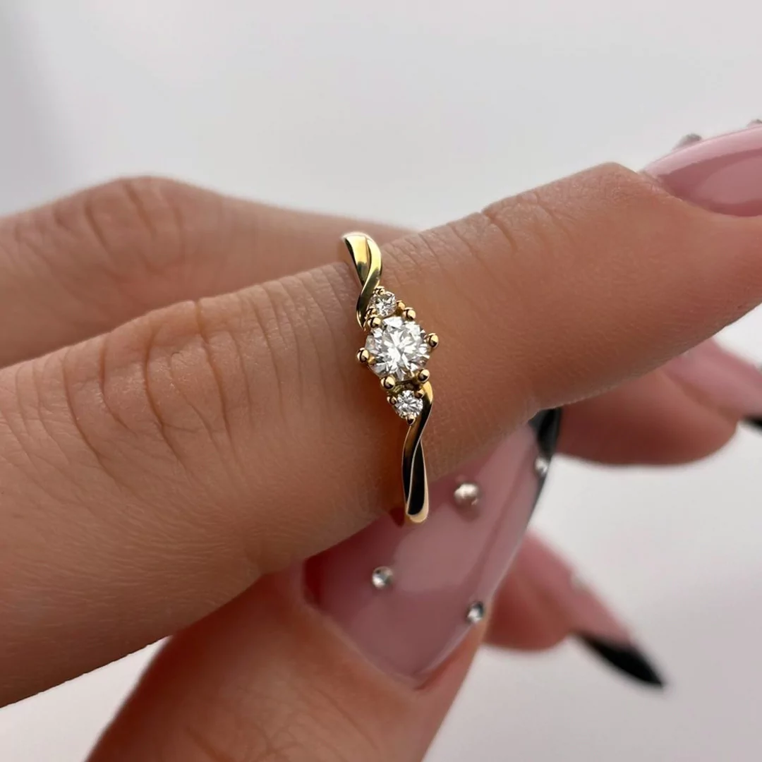 Pierścionek z diamentami o łącznej masie 0,30 ct, wykonany z 14-karatowego żółtego złota.