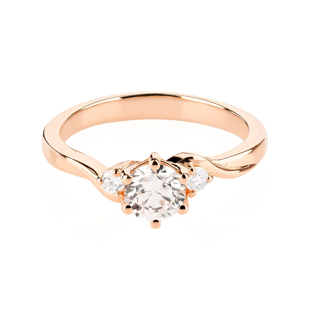 Pierścionek z diamentem laboratoryjnym o masie 0,50 ct i 2 naturalnymi brylantami o łącznej masie 0,07 ct, wykonany z 14-karatowego różowego złota.