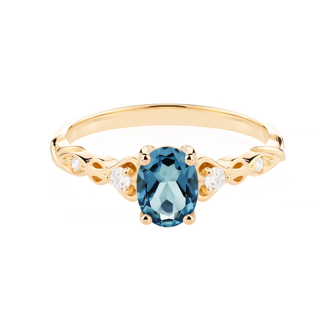 Złoty pierścionek z topazem London Blue i diamentami TP0028ZLTZ